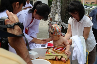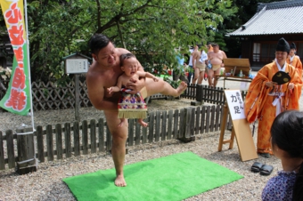 まだまだ弱々しい赤ちゃんが、しっかりとした子供へと成長することを願い、神さまの前で元気な泣き声を聞いていただくことで、より力強く守っていただくこと願う行事、それが「赤ちゃん泣き相撲」です。